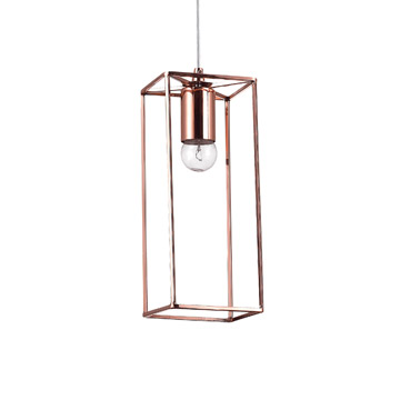 Полностью металлическая рама с медной отделкой. Вариант подвески снабжен электрическим кабелем, регулируемым по длине. Каталог "Светильники Ideal Lux"